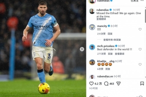 伤愈后首次主场出战!鲁本·迪亚斯社媒庆祝:想念伊蒂哈德球场