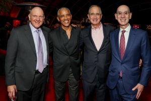 官方写道:“NBA全明星赛在洛杉矶拉开帷幕,史蒂夫·鲍尔默和布莱恩·罗伯茨热情迎接了NBA嘉宾和全明星球员。NBA总裁亚当·萧华和特别嘉宾前总统奥巴马也出席了活动,共同庆祝这一难忘的夜晚。”