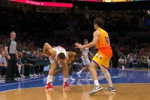 GIF-申京被对手肘部撞到肋骨