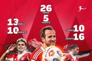 德甲晒拜仁三叉戟本赛季联赛数据: