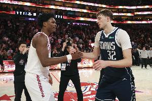 谈到此前对阵阿门和小贾巴里·史密斯,他称赞道:“我不知道我此前是否和像阿门那样有运动能力的球员同场竞技过,而小贾巴里攻防一体,一旦找到他的甜点位,就很难防守了。”