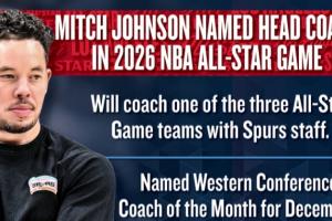 今天两场比赛过后,马刺确定西部第二席位。马刺主帅米奇·约翰逊确认获得全明星主帅资格,他将执教美国VS世界的三支球队之一。