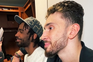 火箭美女记者Vanessa Richardson晒出申京和伊森赛后接受采访时搂着肩膀的合照,配文写道:“氛围,化学反应,肢体语言。”