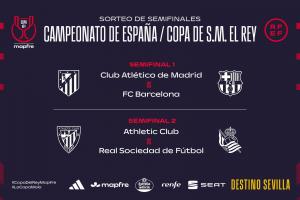 体育资讯02月06日讯 国王杯半决赛对阵抽签今天进行,最终巴萨遭遇马竞,毕巴将对阵皇社。